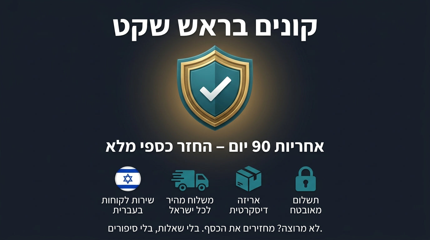 יש לך 90 ימי ניסיון מלאים. אם לא מרוצה מכל סיבה - החזר כספי מלא, בלי שאלות.